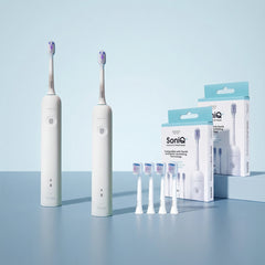 ZENT SoniQ+ combina dos movimientos innovadores en un solo cepillo: un giro mecánico preciso de la cabeza de 60° (hasta 180 veces por minuto) y vibraciones sónicas intensas (31 000 por minuto).
